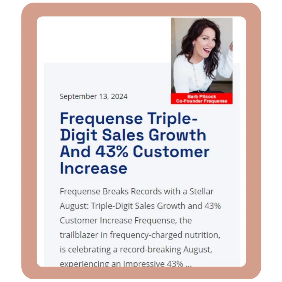 At Frequense, we don’t just talk about balance—we create it. Our products are designed to help people reclaim their energy, focus, and well-being. While we’re proud of how we’ve helped thousands feel alive again, we’re equally excited about the opportunity we’re providing for people to thrive financially. Named the #1 Startup of the Year and achieving impressive customer growth, even in prelaunch, Frequense is more than a business—it’s a global movement with over 30,000 people rising and vibing worldwide.